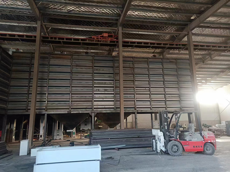 方形鋼板倉易產(chǎn)生不可挽回的變形的部位是上下層壁板連接部位的內(nèi)橫梁和外橫梁的中間區(qū)域,因為目前國內(nèi)外使用的大部分是單倉2.5 mx 2.5 m鋼板倉,所以我們對這 個型號的鋼板倉進行了拉力試驗。